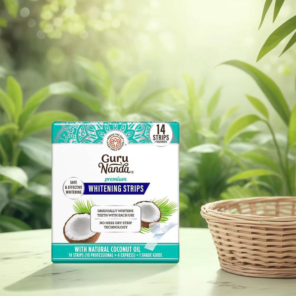 Our whitening strips are infused with natural coconut oil, delivering professional- level whitening results at home while remaining gentle for a brighter/healthier looking smile
